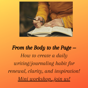 From the Body to the Page is back! Join me for this workshop and think of this as a mini retreat for your heart and soul!