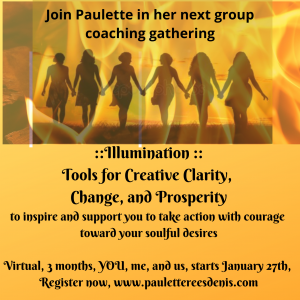 I recently had the honor of being part of Paulette’s Coaching class. What an amazing experience it was – from the personal coaching call to clarify my goals; to the deep inner work that is an integral part and really helps to clear blockages to your creativity. The once a week global chat meeting connected me with like-minded women on similar paths. It kept me focused and accountable to myself and Paulette – she keeps you 100% on track and demands you be real with yourself.