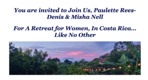 COMING SOON!!! Mark your calendars!A Retreat for Women, Costa Rica Like No OtherEmbrace the Wild and Divine Feminine Within…A Journey of Exploration and Transformation for Women,with Paulette Rees-Denis and Misha Cain Nell!