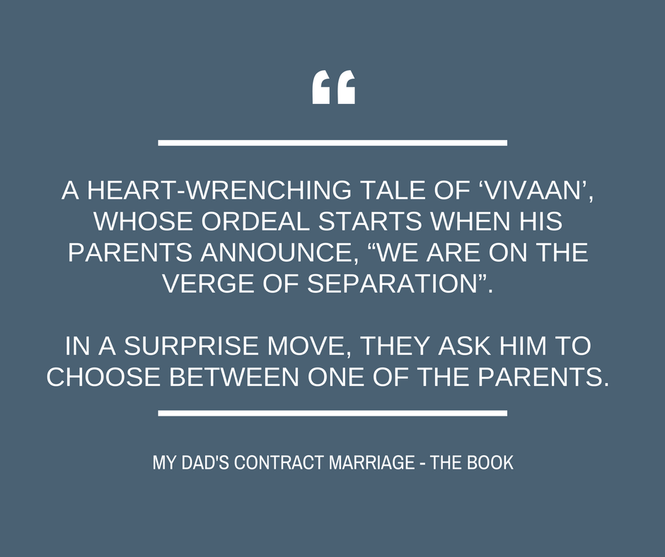 My Dad "Samar" and my Mom "Sandhya" would start living separately. What about me? I had no idea! I loved my parents; they were one of the best human beings on this planet. Why were they behaving this way? They always said, "Vivaan, you have grown up. Stop behaving like a kiddo!" Why were they behaving like kids themselves?