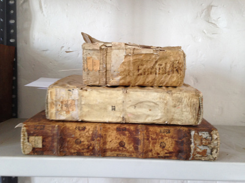 Here is the inquisitor note from the bottom book. Previously, we featured the top book in the stack, including some precisely razored-out passages inside–no doubt Diego’s doing!