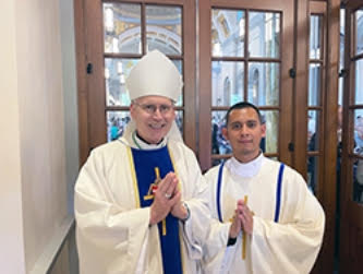 The Rev. Mr. Houston’s diaconal ordination was celebrated at the Cathedral of the Most Sacred Heart of Jesus through the laying of hands and the prayer of consecration invoking the Holy Spirit by Archbishop Shelton J. Fabre of Louisville, KY. Bishop-elect Mark Beckman of Knoxville and AMS Auxiliary F. Richard Spencer concelebrated the 10:30 a.m. ordination Mass. Among those in attendance were the new deacon’s father, Mr. Charles Houston, who served in the U.S. Navy as a corpsman.