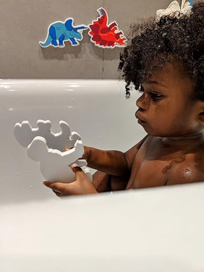 He’s quicker at shopping than his sisterObviously, all this Dinosaur activity might be overstimulating for casual dinosaur fans like you and I. We might like to relax in a hot bath and let our thoughts wander elsewhere. My son, on the other hand, takes the opportunity to maximize dinosaur output by sticking them on the bath, outside the bath and occasionally in his mouth as he mimics actually dinosaur life.