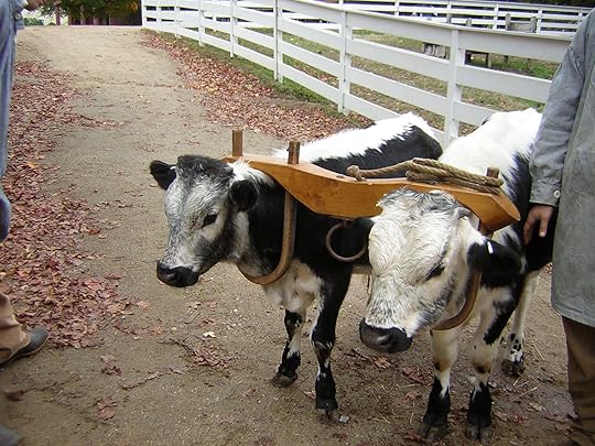The highlight of the trip, of course, were the baby oxen. Here are our new friends, Doc and Blue. We warmed our hands in their fur; these two were like ovens. They do a little work, get a lot of attention, then graze and nap. A fine life for an ox.