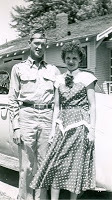 Last week was filled with sadness.  On Tuesday, my aunt passed away.  She's pictured at left with my uncle (my mother's only brother) in his uniform in front of the house where I grew up.  That's the neighbor's house in the photo.  For me, it was the last of my family, except for the cousins.  Of course there are many, many of those.My uncle passed away in May, and at that time I became aware that my aunt's health was failing. Because of her dementia, I battled with myself about going to visit her, knowing she probably wouldn't recognize me. I couldn't convince myself that I could handle it well and, as it turned out, I didn't visit. I'm not having any regrets. Why? Because I have a lot of memories of both my aunt and my uncle, and I like remembering them that way.