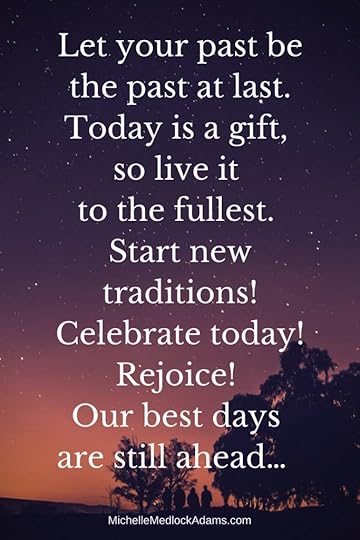 So, where’s your focus today? If it’s in the past, it’s time to shift your focus to the future. Let go and let God. Let your past be the past at last and realize that today is a gift, so live it to the fullest. Start new traditions! Celebrate today! Rejoice! Our best days are still ahead…