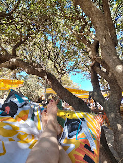 Assos sahilindeyim. İki meşe palamudu ağacı arasına gerili bir hamakta. Güneş epeyce yükseldi. Dalların arasından bulduğu boşluklardan birer ok gibi vuruyor sıcağı bacaklarıma. Fonda 90'lardan kalma şarkılar. Sevdiklerimden.