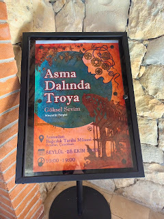 Eceabat'ta Asmadan Bağcılık Tarihi Müzesi'nde sergilenen Asma Dalında Troya Minyatür sergisiyle başladı mini turumuz. Minyatür sanatçısı Göksel Sevim'in daha önce Troya Müzesi Geçici Sergi alanında sergilenen eserlerini görme imkânı bulamamıştık. Yeni yuvasında gezdik. Gezdik dediysem hayli ekspress bir turdu. İçlerinde güzel parçalar vardı. Troya'nın katmanlarını bilmeyen yok. Troya 1'den başlayarak her bir katmanın minyatür yorumlamasında en ilgi çekici parçalar, şehrin yakılıp yıkılmasına yol açan Helen ve Paris'in aşklarının yorumlandığı sahnelerdi elbette. Homeros'un, genç âşıkların, Helen'in Sparta'dan kaçırılışının, Troya atı hilesinin sahnelendiği minyatürleri daha bir sevdim. Çünkü Troya'yı Troya yapan onların hikâyeleri. Troya ören yeri öyle Efes gibi ahım şahım bir şehir değil. Kentin açığa çıkan kısmı göz alıcı olmaktan uzak. Açıkça söyleyelim içinden hikâyeleri çıkartsak hayal kırıklığına uğratması bile pekala mümkün.