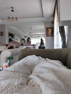 Kanepenin sırt yaslama minderleri uzaklaştırıldı. Yastığım, battaniyem geldi. Suluğum, ilaçlarım, kolonya ve okuyacağım kitaplar, laptop baş ucumda.