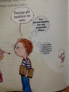 Ertesi gün okulda bacaklarının flamingoya benzetilmesinin hiç de kötü bir anlamı olmadığını görür. Bu keşif, onu meraklandırır. Acaba daha olumsuz görünen konuşmalarda arkadaşları aslında ne düşünmektedir?