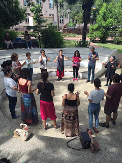 Atölyenin yönlendiricisi, Esra Yurttut, dansçı ve koreograf. Esra'yı farklı atölyelerde izleme, etkinliklerine dâhil olma imkânı buldum. Ondan öğrendiğim bir şey var. Herkesin içinde ben olmayı sürdürmek ancak ben olurken biz ile de akışta kalmayı başarabilmek. Bunu yapmak için kelimelere ihtiyacımız olmadığını sadece beden hareketlerini izleyerek, göz teması kurarak bunu yapabileceğimizi fark etmemizi sağlıyor. İçimizdeki dansı ararken bakmamız gereken yer burası. Benim çıkardığım sonuç bu, en azından.