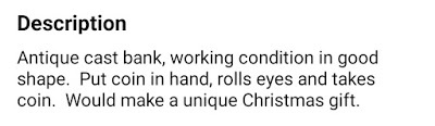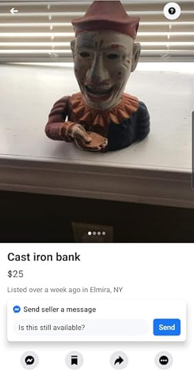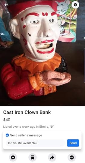 This is the creepiest piggy bank I have ever laid eyes on. This is nightmares. I hate it. It's no wonder why the listing was lowered to $25... creepy coin-consuming clowns are not the craze.
