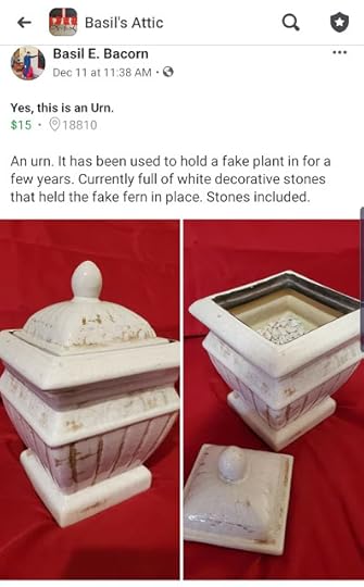 This next one is the urn I have listed for sale in my Facebook group, Basil's Attic. (Quick Promo Time) I'm selling approximately 75% of my belongings, so if you are on Facebook and interested in buying stuff... join my Facebook group here!