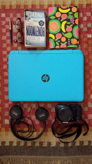 In the picture above is what I use to write and vlog. A Sony H300 DSLR is what I use to vlog when I'm in-doors or create separate videos. The Sony headphones are the best headphones I've ever used. I've had them for about a couple of years and they still work well. They are the longest running headphones I've ever had. Good one Sony! :) I write and edit my videos on the HP laptop, as well as do research, etc. I use the fruit notebook to scribble notes or ideas I have while writing. It's a life saver. The book Honeymoon by James Patterson is part of the masterclass. I've read about half of it. It's better than I thought it was. I need my glasses to see when I'm not wearing my contact lenses and the pen is for writing in the notebook.