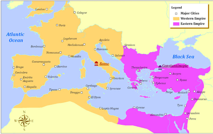 Thirdly, Saint Peter’s Basilica and the Vatican are considered the center of Christendom. But this is a relatively modern development. While Rome has always been central to the Christain world, Constantinople had Christianity’s greatest church, the Hagia Sophia. The great church still exists today but has since been converted into a mosque and museum in modern-day Istanbul. I’ve been there. I’ve seen it. And wow! It’s pretty spectacular for a building built 1,500 years ago. Constantinople fell to the Turks in 1453 and the construction of Saint Peter’s Basilica went into rapid motion and was completed in 1506. The timing makes perfect sense if you understand the role the Byzantine Empire played in the drama. Scholars mostly agree that the Medieval Era spanned the one-thousand years between 500-1,500 C.E. The Byzantines emerged when Rome fell in 476 C.E., and it ended when Constantinople fell to the Turks in 1453. I mean, the Byzantine lifespan is the Middle Ages. Therefore, the Byzantine Empire literally bridges a misunderstood gap in time between you and me today, and our world’s most ancient societies.