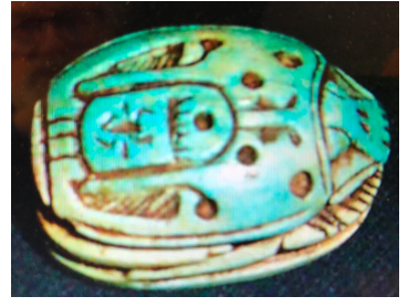 The position of the Scarab in Egyptian society was highly respected. The example of the dung beetle pushing its burden ever onward, was seen as displaying the great qualities of diligence and perseverance. The tiny insect was often celebrated in the form of jewelry and paintings, and I have placed one at the heart of my book.