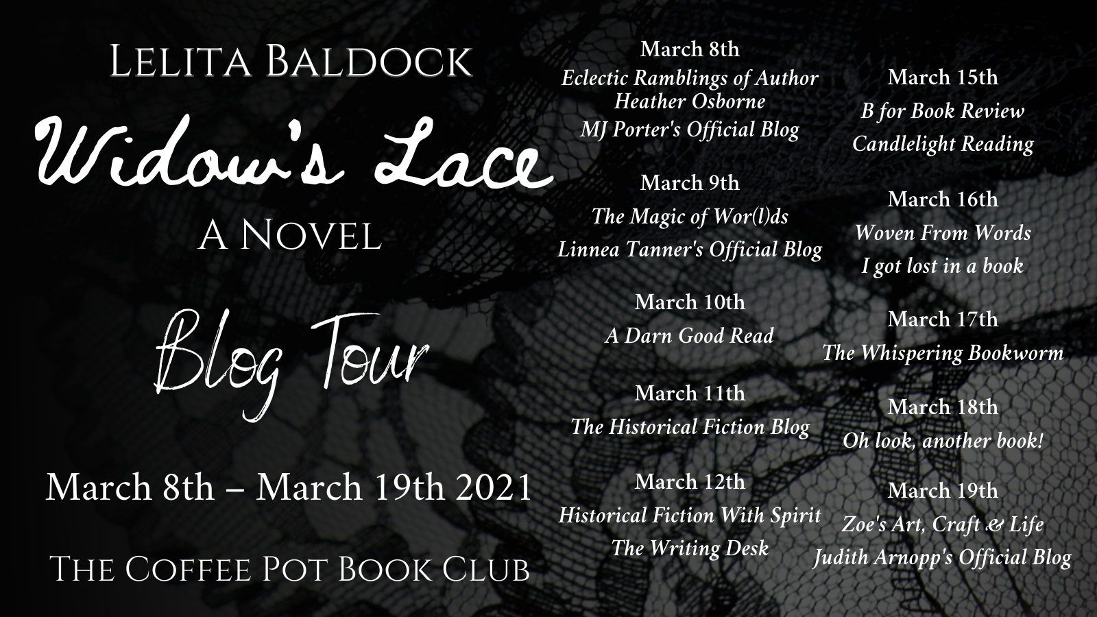 Welcome to Day #7 of the blog tour for Widow’s Lace by Lelita Baldock #HistoricalFiction #HistoricalMystery @BaldockLelita