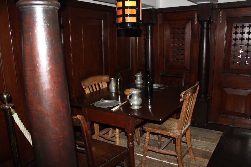 The men ate on tables between the guns, suspended from the ceiling, or sometimes just had to sit on their sea chests.