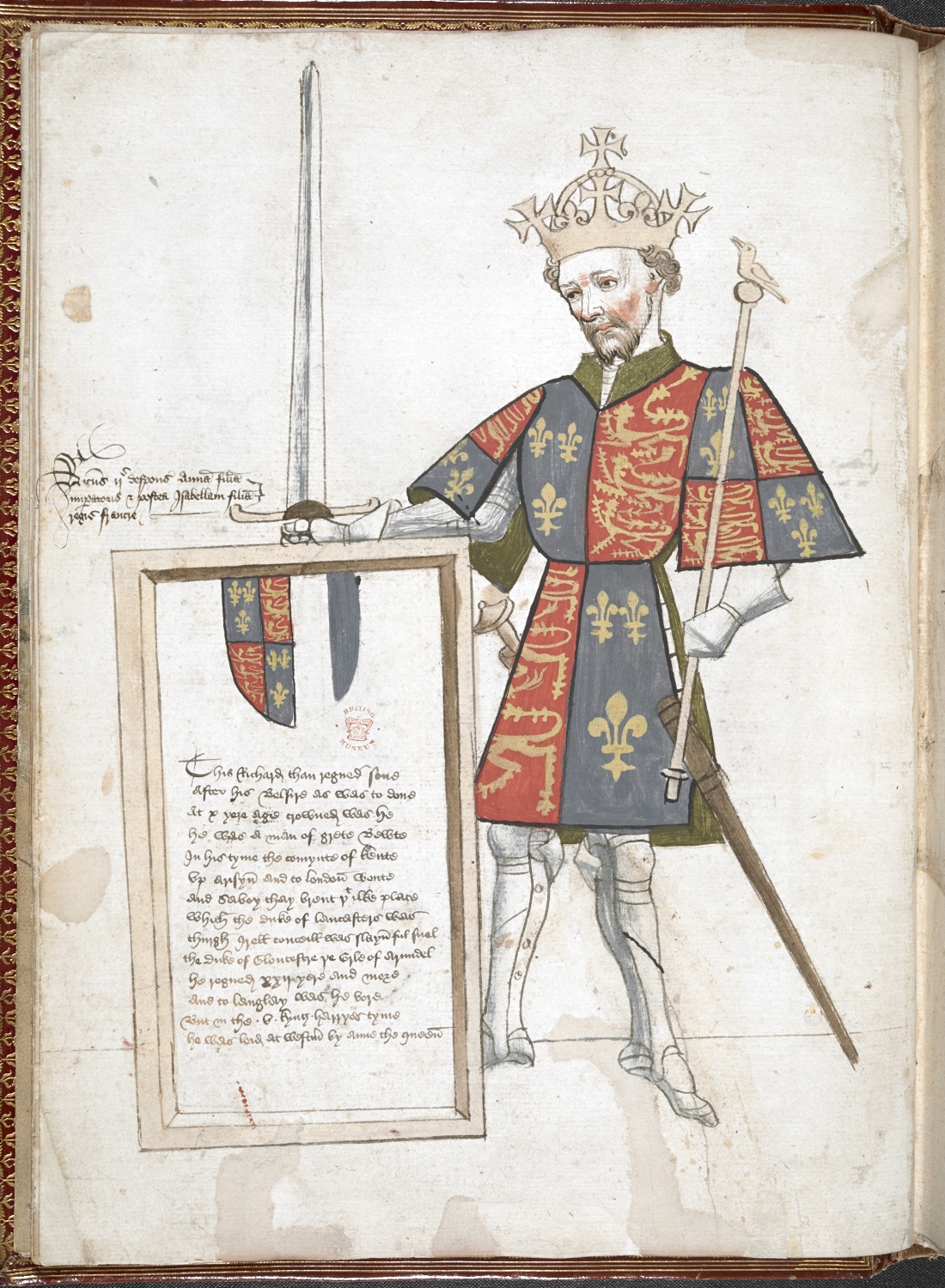 Richard II from Sir Thomas Holme's Book of Arms, British Library: MS Harley 4205 f.6V