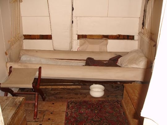 Officers (and any wives or loose women they had) slept in cots, with a degree of privacy—the more senior had larger quarters, and on a flagship like Victory, there would not only be a large cabin with stern windows for the ship’s captain, but similarly impressive quarters above that for the Admiral.