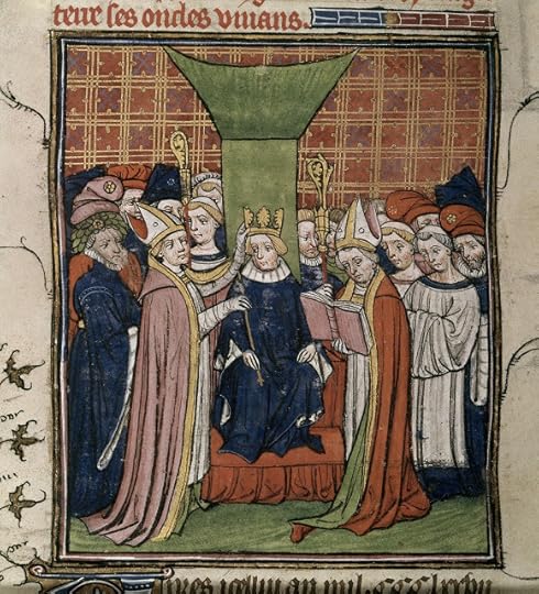 So the ten year-old Richard was crowned king; nobody wanted to take a chance on a less-than-secure regency. But this was not the end of the story. In the short run, of course, there was no reason to give the succession much thought. Richard married at age fifteen and his queen was only a year older than him. But after five or six years of infertility, it was beginning to look like there might be a problem. Queen Anne's untimely death after twelve years of marriage and Richard's subsequent espousal to the 8 year-old Isabella of France made it obvious that a child could not be expected for a long time—possibly never.