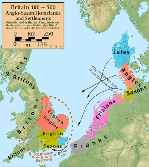 But Clovis was not the only one who hankered after new territory. The Saxons, Jutes, Angles, and not forgetting the Frisians, crossed the South Sea to take advantage of vulnerable Britain who, since the Romans had left, had split back into various smaller kingdoms. There was much infighting and unrest. It was the perfect opportunity for these invaders to come over and stake their claim to this rich and fertile land.