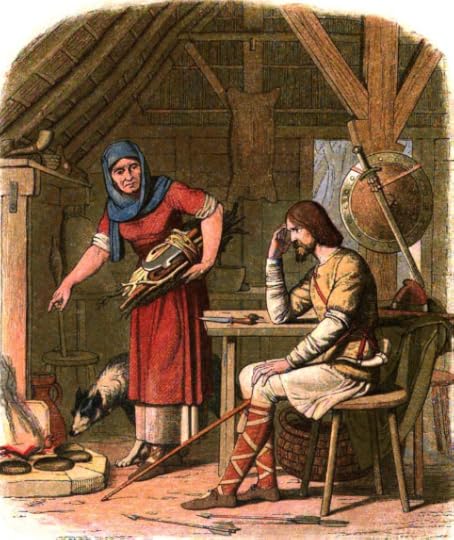 Well, let’s just look at that for a moment. Given that he was under attack, Alfred probably left Chippenham in haste with little more than his weaponry and the clothes on his back. Certainly it’s unlikely that he would have had any regalia or robes that might reflect his status and, whilst we don’t know exactly when the cakes incident is supposed to have taken place, even if it happened after only a few weeks of living rough, it’s reasonable to assume that Alfred would have looked dishevelled and well the worse for wear. Also, Wessex was the last piece in the Viking’s invasion jigsaw and they had only to capture Alfred in order to complete it and thereby secure their domination of all England. Thus the price on Alfred’s head would have been enormous - certainly enough to tempt someone to betray him and, in those circumstances, it’s not unreasonable to think of him disguising himself, with his true identity being known only to the small band of survivors whose loyalty was beyond question and whose fate was inextricably bound with his own. To achieve this, he may well have presented himself as just another ragged and destitute soul who had been driven from his home and thus the poor woman who offered him shelter may have had no idea who she was taking in. However, I have to question whether that is a realistic contention. Alfred, and those with him, would surely have had their war gear and weapons, particularly if they were indeed carrying out raids on Viking targets and positions. That alone should have marked them out as being at least of noble blood and for a lowly coerl or peasant woman to scold her betters over such a trivial matter as a few cakes seems highly improbable.