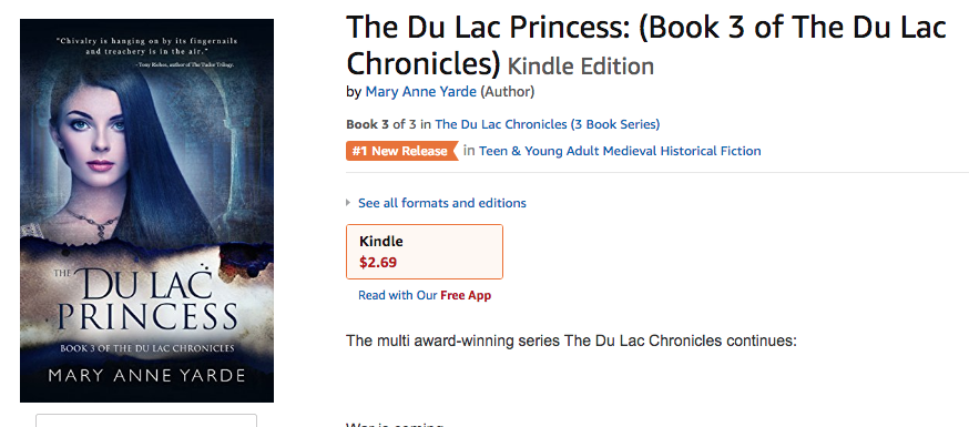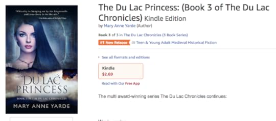 I published The Du Lac Princess (Book 3 of The Du Lac Chronicles) back in October, and it went straight into number one in its genre and got that coveted orange bestselling badge from Amazon, and it kept it for two days! I was very emotional when I saw that.