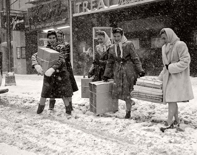 I spent the first Christmas of the war in Felpham in West Sussex, where I’d been evacuated with my family and it was during one of the worst winters that I can remember. It snowed for months, the Thames was frozen for eight miles from Teddington to Sunbury. And Christmas shopping, such as it was, was done over slush filled roads and pavements as the snow fell.