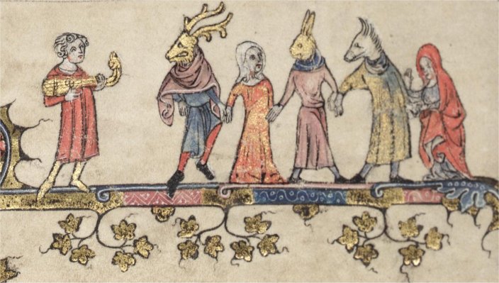 Watch as they go by, the shabbiness of their antique garb hidden as dusk approaches and they ride past two by two in red velvet and tawdry damask, faces hidden by masks. And that is not all. There are the feathered false-knights with their squires on horseback. Here comes an Emperor in velvet and fake jewels. And look! A Pope with his retinue of red-clad cardinals followed by the papal legates, the villains with their frightening black masks.