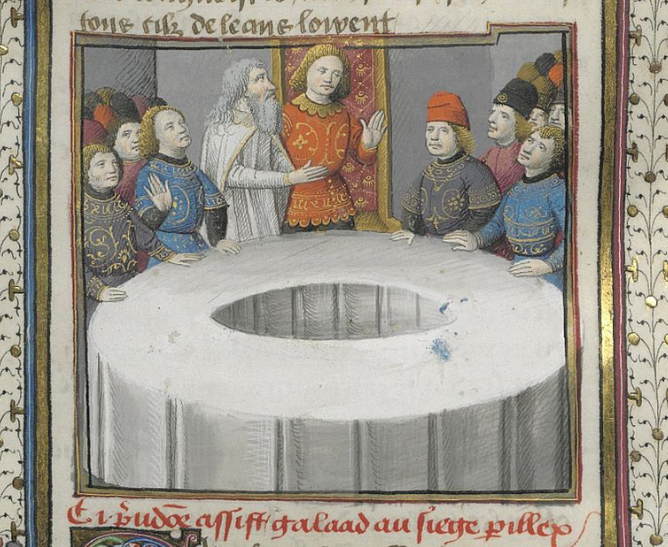 "...Because of these noble lords about his hall, of whom each knight pained himself to be hardiest champion, and none would count him the least praiseworthy, Arthur made the Round Table, so reputed by the Britons..."