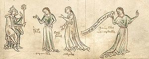 King Leir and his daughters, a marginal illustrationin the Chronica Majora, c. 1250 ~ Wikipedia