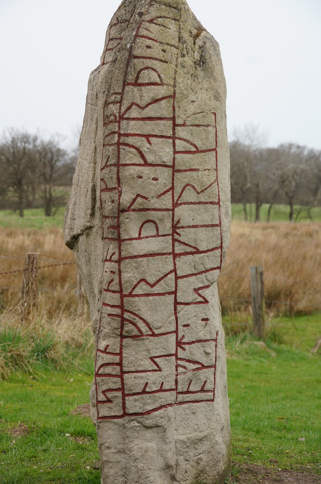 Then I always take a walk: up the mound, walking from one end to the other following that perfect half-circle, looking down on what is left and recreated of the town and harbour. I look down to the outer side, where the fields must have been, where people felled trees, and let their cattle graze. I can walk down from the mound and disappear in the light forest, circle the reedy, peaceful Haddebyer Noor, and find two runestones along the way. They, too, tell stories – and authentic ones. I can touch their rough surface and see the red runic writing, and imagine the people they talk about, and the people who erected them to commemorate Sygtrygg and Eirik.