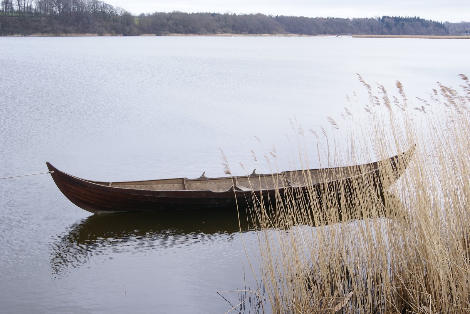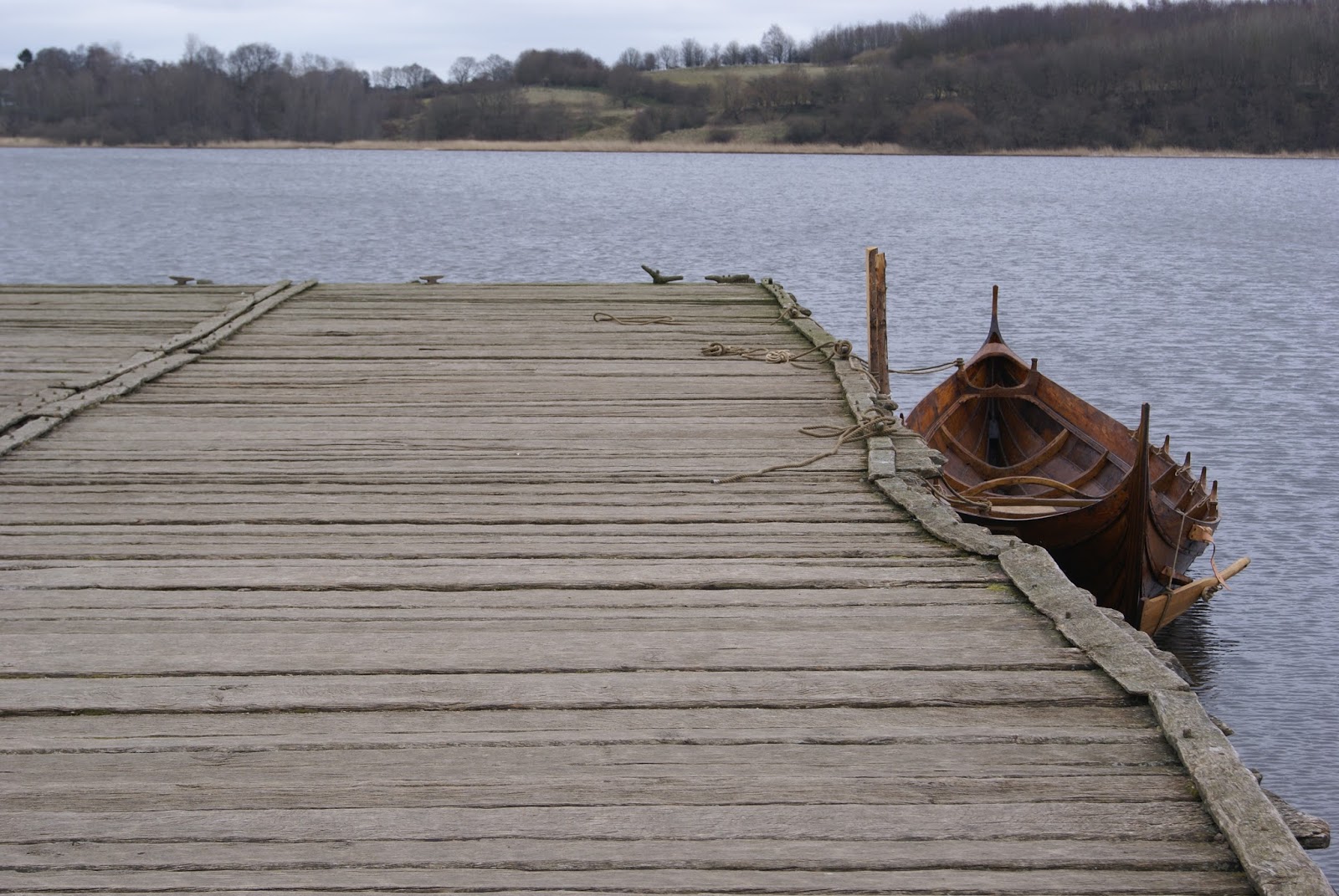 And today, the mound is still there, some of the houses revived, the landscape and sea-level fairly similar. When I arrive at the site, I steer clear of all people and wander down the wobbly plank paths alone, to duck into dark and smoky huts, or look out across the water. Just soaking up atmosphere, I walk out onto the rough pier and imagine a long row of ships of all sizes. Stalls and shouting people. The noise and stink that has long gone. With a 180-degree turn, I take in the entire landscape that must have looked similar then, although some tree species changed and agriculture – the death of Viking sites all over Scandinavia – changed some aspects forever.