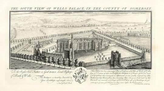 An engraving of the Bishops Palace, Wells made by Samuel and Nathaniel Buck in 1733, showing the wall and moat
