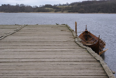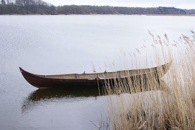 The German Haithabu/Hedeby Viking town and museum is my favourite place to go and immerse myself into Viking spirit, and to conjure up new story ideas (or solve older ones). Situated at the estuary of the Slien, the ages-old site is still in the original place, still embraced by the protective earthen mound's half-circle. I go there at least once a year, and their museum accompanying the site of the town is excellent. The general tranquility and relative remoteness sparks my creativity. Some of the Viking townhouses have been restored and make up a tiny settlement now, where once over 1,000 people from all over the world lived together. Standing high on the mound, face in the harsh winds and looking at the flat below, across the re-erected pier and the grey water, it's hard to imagine the bustling and what it really must have been like: living as a Viking man or woman in such an exceptional place. There were almost no towns then. Hedeby was unusual and an ongoing experiment of clashing cultures and beliefs.
