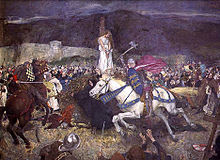 Arthur's army and Mordred's, meet at Camlann. Arthur kills Mordred, but he himself is gravely wounded. He is taken to the Isle of Avalon and no one knows what happened after that.