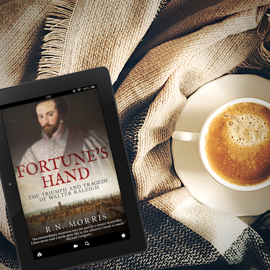 R.N. Morris: When I began researching the book, I confess I knew very little about Walter Raleigh. So it was all new to me, and all surprising. I think the most unexpected thing I learnt was that he was not a particularly good sailor and suffered badly from seasickness. That features in the book, naturally! Also I didn’t know the story about his head – that after his death, his wife kept his severed head and carried it around in a red velvet bag. I think there’s possibly another novel in that, a companion piece perhaps, where Bess berates Raleigh’s head for all that he put her through!