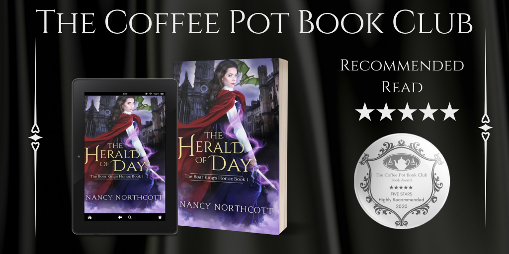 The Herald of Day (The Boar King’s Honor Trilogy, Book 1) by Nancy Northcott is one of the top five books that I have read this year. I could have happily read another thousand pages of this book, and I would not have grown weary of it. It is absolutely brilliant from beginning to end—a priceless masterpiece that deserves a place on your bookshelf and in your heart.
