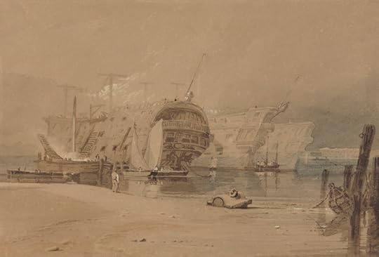 Hulks at Plymouth (undated) by Samuel Prout, reproduced with kind permission of Yale Center for British Art, Paul Mellon Collection.