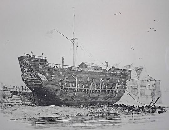 Research on my latest project looking into an unsolved murder in the 1810s has led me to the prison hulks in the Thames. Life on these obsolete, mastless ships was miserable, with no end in sight – it could be a few months or as long as two years. You could be on a hulk for years before your country compelled you to travel to New South Wales to begin your new life of indenture. The convicts dubbed it ‘a voyage to nowhere’.