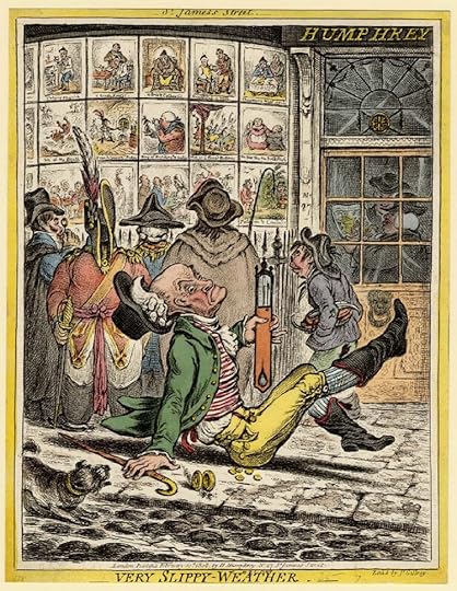 James Gillray, Very Slippy-Weather, showing Humphrey’s shop front in detail (1808) © The Trustees of the British Museum