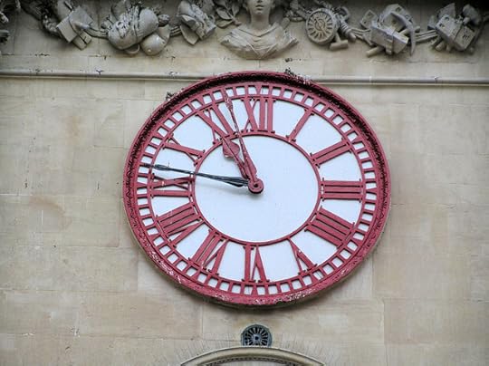 The clock on the Corn Exchange has two minute hands: the black one shows ‘Bristol time’ while the red shows GMT. cc-by-sa/2.0 – © Rick Crowley