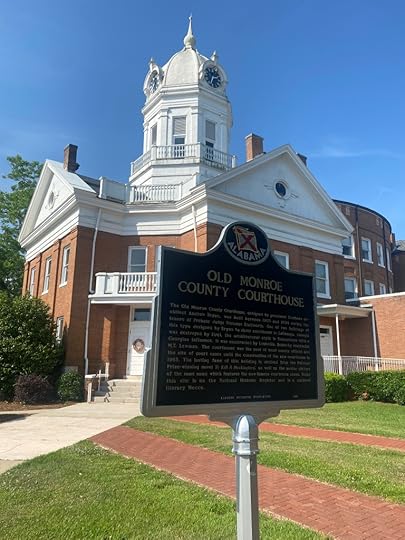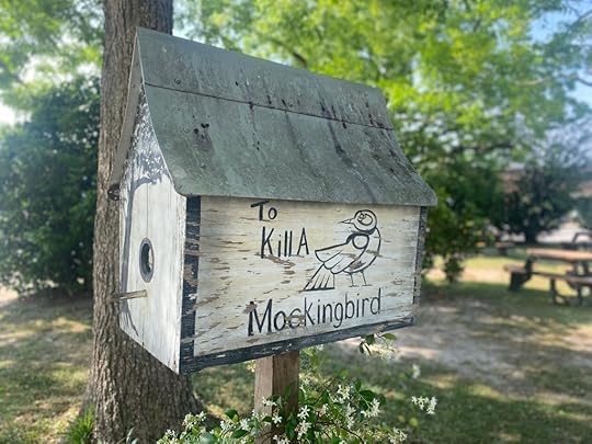I stayed for over an hour. I parked at The Faulk Building, which includes four types of lofts: the Scout, Atticus, Harper and Capote. I crossed Alabama Avenue to find the stately Old Courthouse Museum, the most famous courtroom in literature. I walked around it twice. I saw a rock monument to Atticus Finch, Mockingbird-themed birdhouses big as Yeti coolers, a sculpture of three Depression-era children reading the novel, and a Literary Landmarks Register marker dedicated to Truman Capote. Chirping birds overwhelmed any low rumble of nearby traffic.