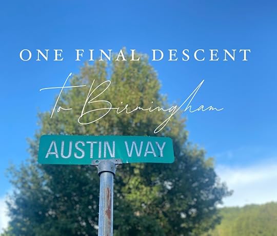 I backed out of the driveway and stopped at the Austin Way street sign to take a couple photos. The white letters were cracking and the silver pole was half-brown with rust. I climbed back into my truck and turned left to head down the hill and out of the neighborhood. I heard a roar overhead and looked through my windshield to see an airplane making its way home to Birmingham.