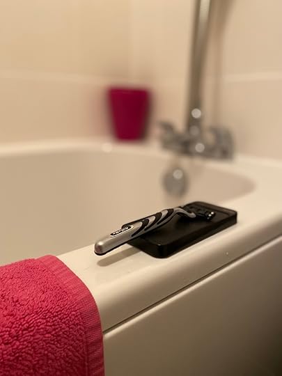 After doing some research, I was surprised to discover that strops need not be confined to scenes in old films, where a barber cleans a cut throat razor. Strops are available for cartridge razors – a piece of silicone rubber material set in a plastic frame, over which you pass the blade a few times after shaving. I bought one and started stropping. Doing this I have been using the same cartridge for six weeks now. Rather than using a new blade, it was only necessary to clean the old one. It seems a cartridge can actually be made to last for months.