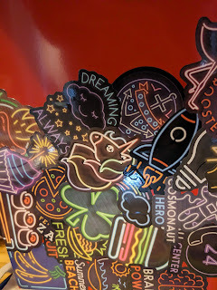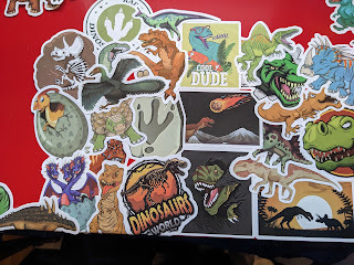 On stream, I began sticker bombing the doors of my media cabinet. One has dinosaurs. Another has games and music. Door three has neon stickers. The final door will have pride stickers on it. I didn't get started on it. I also ran out of stickers, and had to wait for more to arrive. I'll be working on it more during the week and I will likely not finish it on stream as I'd like to get my doors back onto my cabinet as soon as possible. The craft is a mix of fun and frustration.