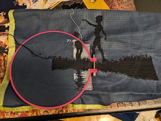 Speaking of women's history, last week ended with International Women's Day and this is Women's History Month. One of the events I went to didn't sit well with me. There were no women like me there. Butches deserve representation. A lot of women have no interest in looking like a Kardashian. There was an American woman who proceeded to tell us that women should always do things with grace. I felt like telling her, "Honey, the only grace I need in my life is Grace Zumwinkle." It's long passed time that women should just be able to be who they are and not be told by anyone else, including other women, that they have to dress or act in certain ways to be valid as women.Arts and CraftsI did get my Fairy put back together properly and I've been making steady progress on the rest of this project. I'm aiming to get the darkest colours out of the way as they are the most difficult to work with on navy blue Aida. I promise she's all in one piece. The ring just makes it look sus.