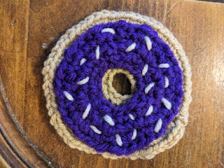 I was in the mood to finish other projects this week, so I completed my donut coaster. One sprinkler is sus and so is the bread part of the donut, but the icing went fairly well, so my crochet is improving. I still don't love it. Maybe I'll just prefer the basic crochet rather than the fancy stitches that mean way too much counting for me.