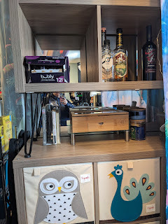 When I joined my two metal IKEA PS cabinets together, I lost the space I had my small bar area on. This has let me have space for one again. I'm not a big drinker these days, but I'd rather my bottles have a spot that isn't on the bookshelves in my living room. My tea items are able to live there too.
